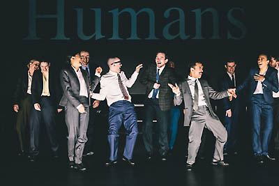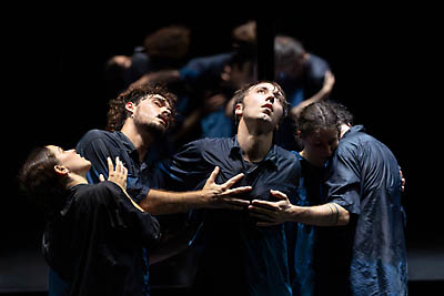 振付家がテーマを出して振り付けを始め、それに呼応する脚本と演出を手がけた第1部、第2部と第3部は先に台本とセリフがあり、それに対しての振り付けが行われたという。ダンサーは踊りながらセリフを語り、歌う。ジェスチャー的な動きが続く中の一場面で、バレエ的な動きが展開された時、空間が一気に広がった。エッジの効いた動きに見慣れていた目には、このふわ〜っとした動きに転換した瞬間の空気の変化が新鮮で、作品の広がりを感じるとともに、ダンサーのレベルの高さに釘付けになった。