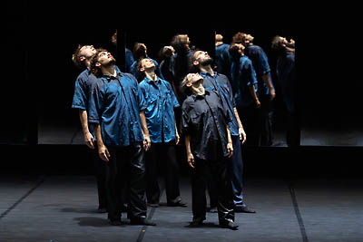 現代社会を鋭い視線で分析し、そこに生きる人々の思惑が交差する。23人のダンサーが演じる現代社会の構造が、過去に起きた事件や問題を思い起こさせる。ブレのない鋭利な動きを綴りながら吐かれたセリフが心に刺さり、ふと立ち止まった時の感情に解される。そんな振り付けと演出が見事に融合し、それを的確に演じたダンサーたち。振付家、演出家、ダンサーのエネルギーが見事に融合した、見応え十分ではあったものの、休憩を含めて2時間強の間、台詞とダンスが息つく暇も無いほどの勢いで埋め尽くされていることが少し重く感じられ、その夜はなかなか寝付けなかった。(6月27日OPERA BERLIOZ / LE CORUM)