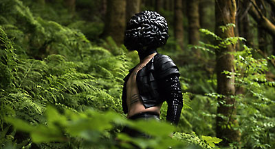 鮮やかなオレンジと緑の色彩が鮮烈だ。ワンシーンがかなり長く、動くものは少ないのに見入ってしまうのは、自然の美しさのせい?いや、何かが違う。後半でオレンジ色の服を纏った人たちのアップが映った。なんと、彼らが纏っていたのはゴム手袋とか道路工事に使われる標識やオブジェだったのだ。長い年月をかけて自然が作り出した地形と、短期間でそれらを壊して新しいものを作り上げる現代社会への批判ではないだろうか。そして緑の映像に映った黒い影は、黒い脳みその頭を持った人。自然を脅かす開発は、人間の頭脳が生み出したものだ。なんという社会批判!静かに、じわじわとメッセージが伝わってくる。