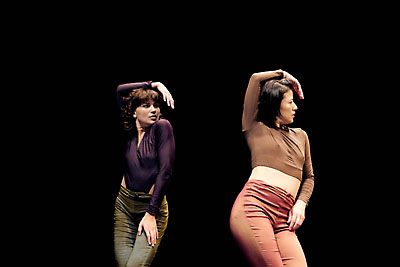 前半は女性のデュエットで、バッハのゴルトベルグ変奏曲に乗って、ゆっくりとしたステップを踏みながら体を捩らせる動きがメインだ。付かず離れずの二人は、時折同じ振りをしたり呼応しながらも、それぞれの世界観を持ち続けている。